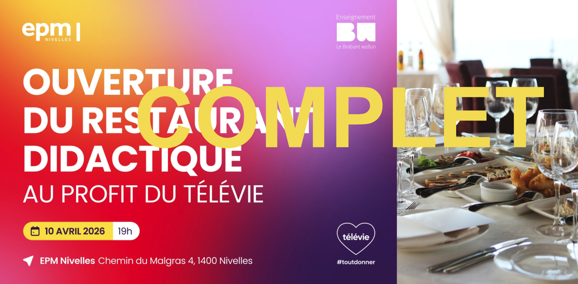 - Vendredi 10 avril : Repas Hôtelier au profit du Télévie